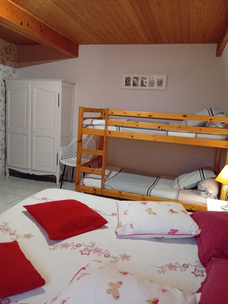 La chambre offre un environnement convivial où petits et grands trouveront leur place, tout en conservant charme et simplicité.